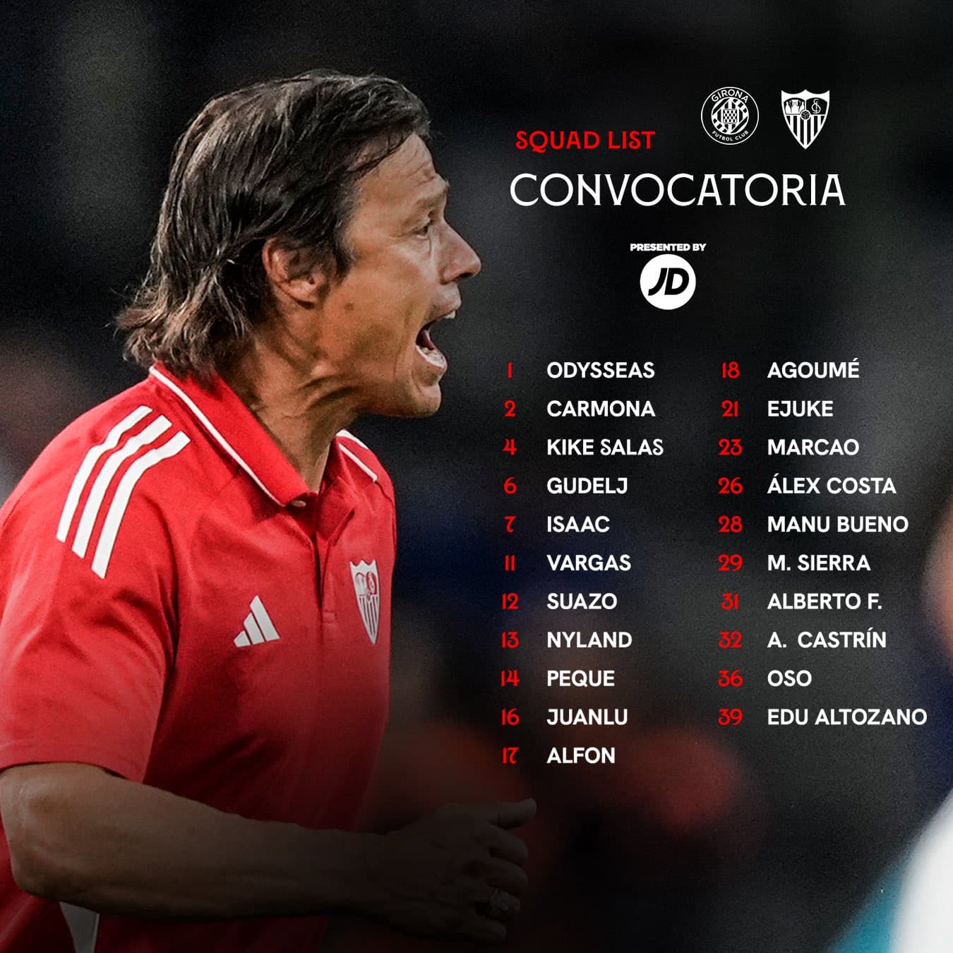 This should be the last game where the squad is down to the bare bones, I don’t expect Lukebakio to be wearing the Sevilla shirt come the next game so it’s down to who is playing on the right. We might see Romero up front but we had a whole season to see how that would pan out. Marcao in the squad? Maybe he’ll start then take the rest of the year off.