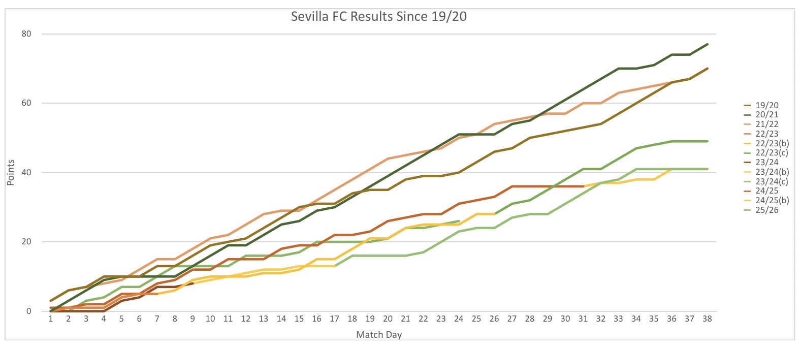 Here’s the updated chart though! Ryan’s right. We are right in line with our other post-Lopetegui seasons. Given the turmoil in our front office and the financial troubles we have, I honestly think we’re overachieving. We were spoiled for a long time, and it’s easy to try to convince ourselves that we should be a top four club, but if any other club was going through this for as long as we have been, we’d be applauding the fact that they’ve stayed in the first division.