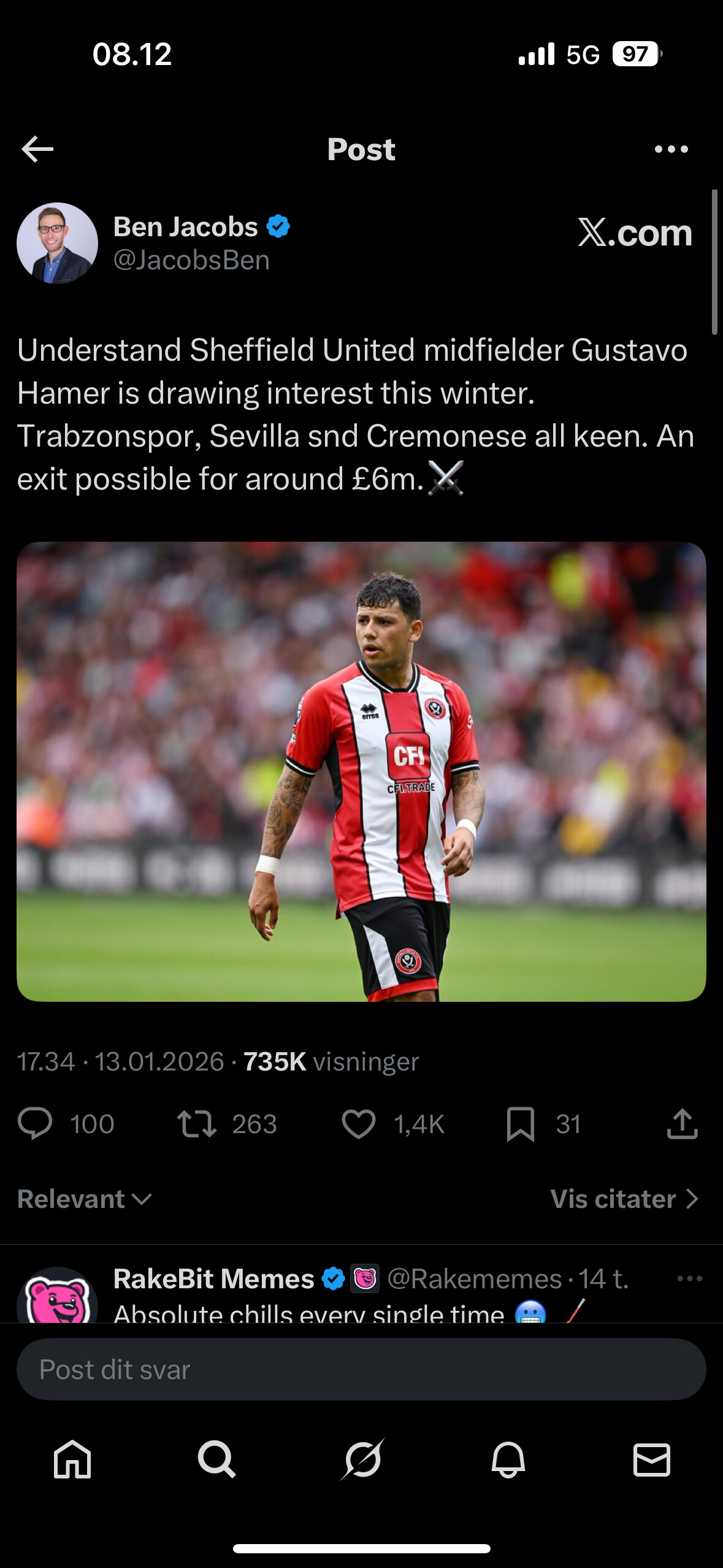 Hamer would be a good addition to our midfield but there’s no way we would get him for only £6m when bids of 10-12m were turned down for him in the summer.