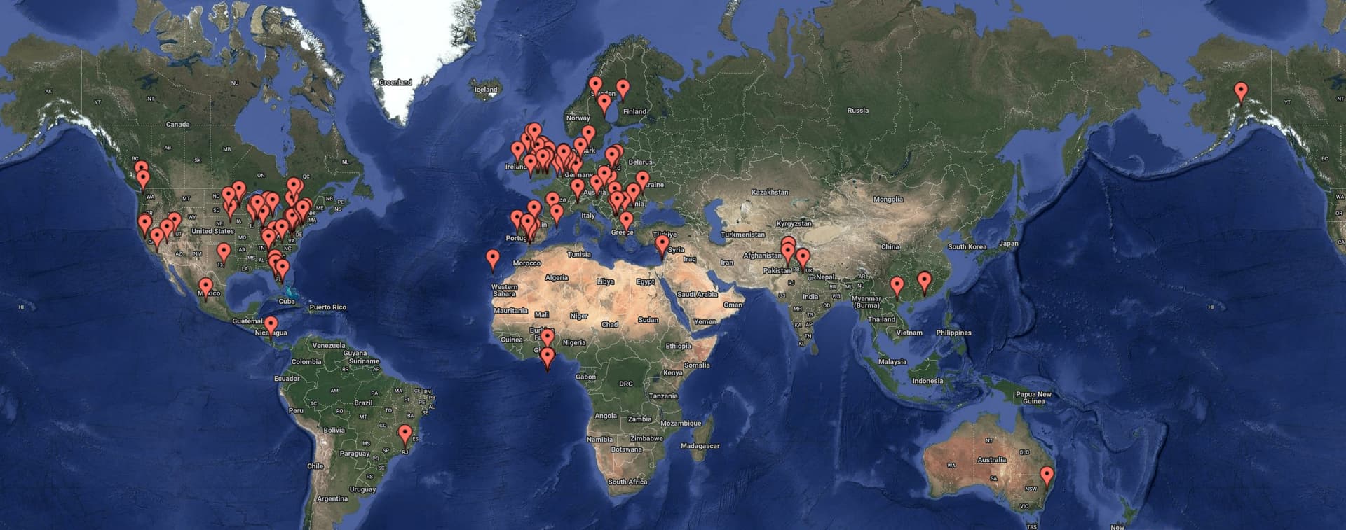 I was alerted to a SFC fan forum that had never heard about us, and they were fascinated by us. Anyway, I joined up and introduced ourselves, and it got me thinking if I could create a map of where all our users (not posters, there are many lurkers on this forum) are located. Anyway, here is that map: